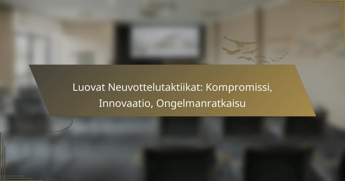 Luovat neuvottelutaktiikat keskittyvät innovatiivisiin ja joustaviin lähestymistapoihin, jotka auttavat osapuolia saavuttamaan yhteisiä tavoitteita. Tällaiset taktiikat, kuten kompromissi, innovaatio ja ongelmanratkaisu, ovat keskeisiä neuvotteluprosessissa, sillä ne mahdollistavat tehokkaamman vuorovaikutuksen ja parempien ratkaisujen löytämisen.