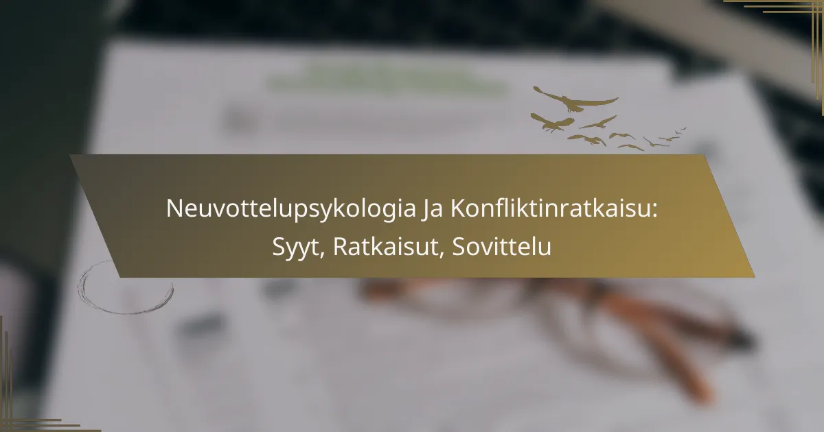 Neuvottelupsykologia tutkii ihmisten käyttäytymistä ja vuorovaikutusta neuvotteluprosessissa, keskittyen psykologisiin tekijöihin ja viestintätaitoihin. Konfliktinratkaisun syyt voivat johtua kommunikaatiokatkoksista ja organisaatiokulttuurista, mikä korostaa selkeiden neuvottelustrategioiden merkitystä. Tehokkaat ratkaisut tähtäävät yhteisymmärryksen löytämiseen ja molempia osapuolia tyydyttävien lopputulosten saavuttamiseen.