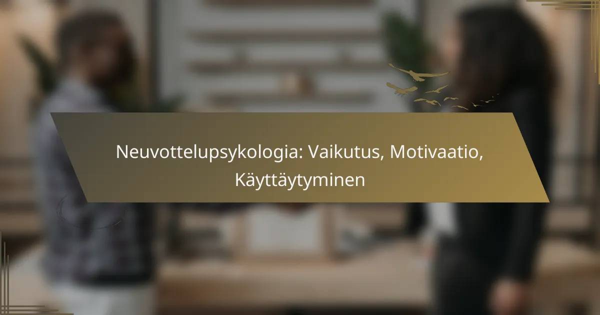 Neuvottelupsykologia on keskeinen tekijä päätöksenteossa neuvottelutilanteissa, sillä se yhdistää strategiat, emotionaaliset tekijät ja kulttuuriset erot. Motivaatiotekijät, olipa ne sisäisiä tai ulkoisia, muokkaavat osapuolten käyttäytymistä ja vaikuttavat neuvottelutulokseen. Lisäksi käyttäytyminen, kuten kehonkieli ja tunteiden hallinta, on ratkaisevassa roolissa vuorovaikutuksessa ja neuvottelujen onnistumisessa.