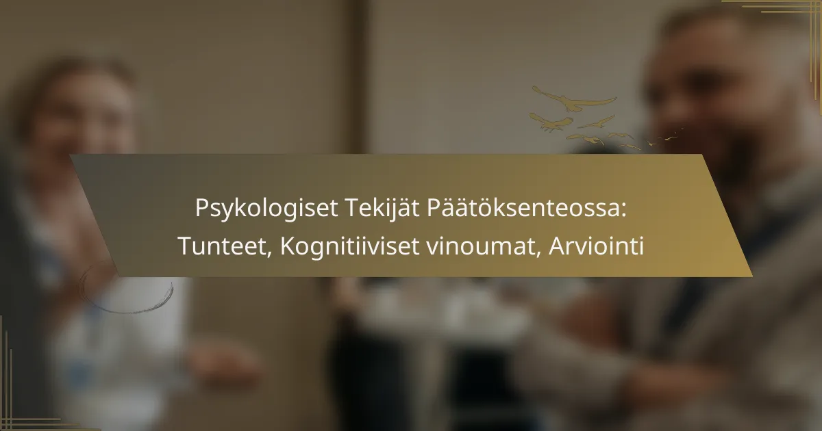 Psykologiset tekijät, kuten tunteet ja kognitiiviset vinoumat, vaikuttavat merkittävästi päätöksentekoprosessiin eri aloilla. Näiden tekijöiden ymmärtäminen voi parantaa arviointimenetelmiä ja johtaa parempiin päätöksiin niin liiketoiminnassa kuin henkilökohtaisessa elämässä.